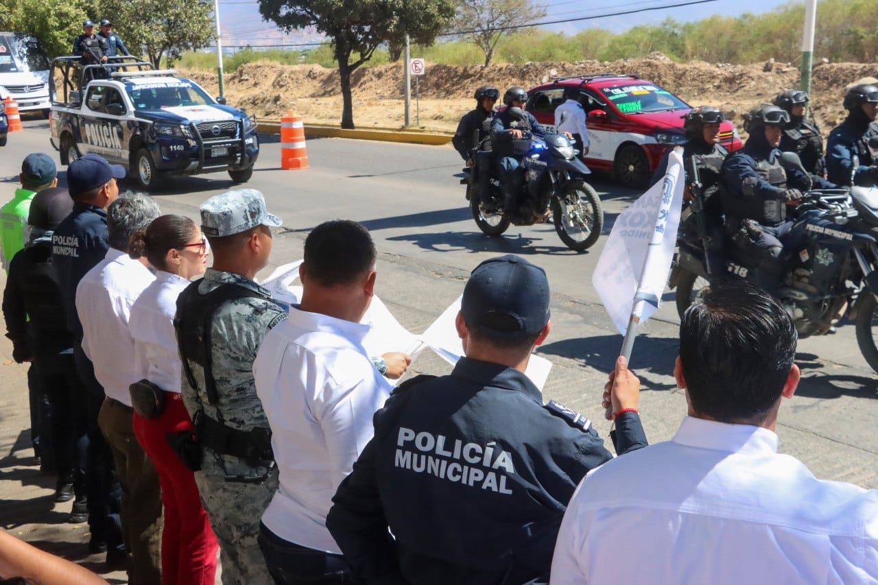 Santa Cruz Xoxocotlán, Oax., 25 de marzo de 2024.- Esta mañana, acompañado de las representaciones de las áreas de Seguridad estatal y federal, el munícipe de Santa Cruz Xoxocotlán, Inocente Castellanos Alejos, dió el banderazo de arranque del operativo Semana Santa Segura 2024.