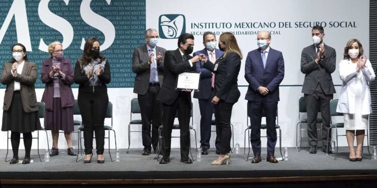 También se hizo la entrega de un reconocimiento a la práctica competitiva “receta visual” que fue desarrollada por el Hospital Rural de Ixtepec, Puebla, del programa IMSS-BIENESTAR, y al doctor Juan Carlos Rodríguez Zuñiga, de la Unidad Médica de Alta Especialidad (UMAE) Hospital de Traumatología y Ortopedia No. 21 de Monterrey, Nuevo León, quien destacó por su desempeñó en el proceso de evaluación del Premio IMSS a la Competitividad 2021.