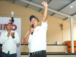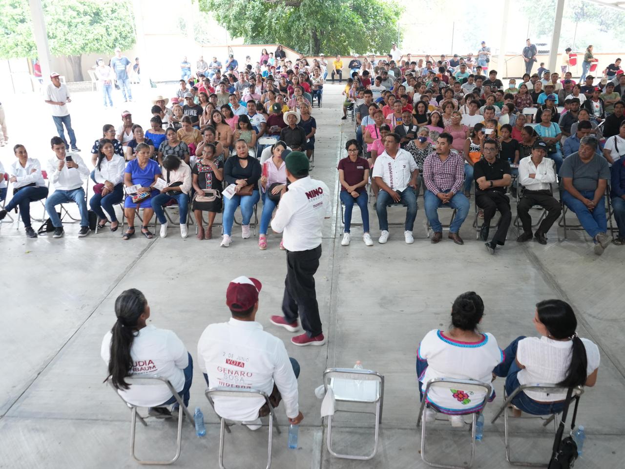San Juan Bautista, Cuicatlán, Oax, 15 de mayo de 2024.- Nino Morales candidato de MORENA al Senado, pidió a los pueblos de la región Cañada a pintarse de guinda y no confundirse porque el único partido político con principios y valores leales con la transformación es MORENA.