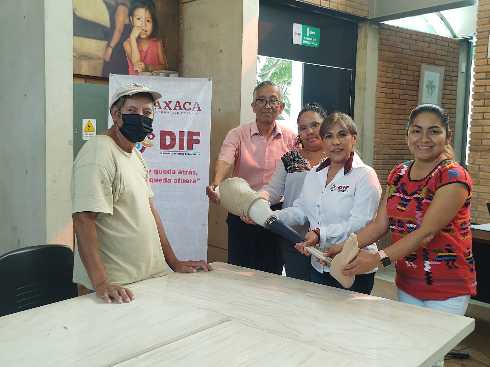 Fue en las instalaciones del DIF Oaxaca, ubicado en la colonia Miguel Alemán, donde se oficializó la entrega de la prótesis, luego de las gestiones y seguimiento por parte de la Coordinación de Atención Ciudadana y Vinculación Social, y de la Dirección de Operación de Bienestar.
