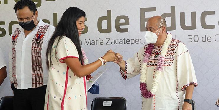 Por su parte, la Secretaria de Pueblos Indígenas y Afromexicano, quien es originaria de esta comunidad indígena que conserva como lengua materna el tacuate y su vestimenta de manta con bordados de animales en miniatura, resaltó que la educación es la herramienta más poderosa y la única manera en que niñas, niños, adolescentes y jóvenes puedan salir adelante y alcanzar sus sueños.