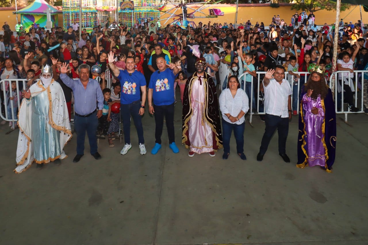 Con la puntualidad que caracteriza a los pequeños deseosos de conocer y recibir a los Reyes provenientes del Oriente, inició el encuentro entre las autoridades y las familias xoxeñas; una convivencia enmarcada en música, juegos mecánicos y show musical.