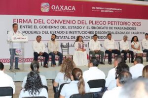 El secretario de Administración, destacó que durante las mesas de trabajo permaneció la voluntad, cordialidad, el respeto, la responsabilidad y la transparencia, valores propios de la Cuarta Transformación en donde el compromiso siempre ha sido Oaxaca y sus trabajadores.