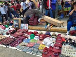Gorras, tazas, «amlitos», playeras, la foto oficial del presidente López Obrador enmarcada y que después del mitin le fue ofrecida al edil petista, así como llaveros, y todo lo que fuera llamativo fue motivo de venta estuvo expuesto cerca del lugar del acto.