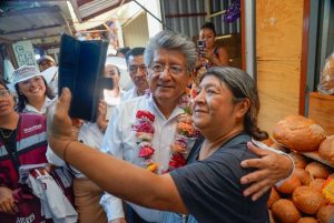 Oaxaca de Juárez, Oaxaca, a 18 de mayo de 2024.- En congruencia con los principios de no robar, no mentir y no traicionar al pueblo, el candidato de Morena a la Presidencia Municipal de la capital, Francisco Martínez Neri, ante comerciantes de la Central de Abasto, reafirmo el compromiso de anteponer el interés social en las políticas públicas que se desarrollen desde el gobierno capitalino.