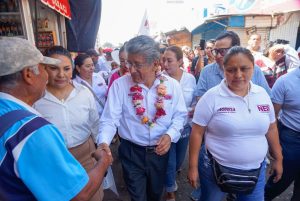 Con integrantes de la planilla, Martínez Neri enfatizó la postura de velar por el bienestar de las y los menos favorecidos, con la convicción de dar atención a todos los sectores de la población a través de políticas públicas que ponen en el centro a la ciudadanía.
