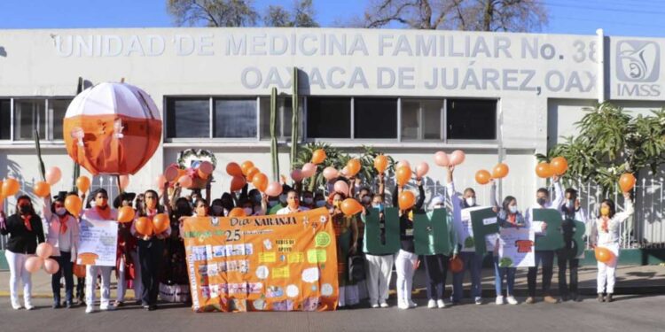 Oaxaca, 26 de noviembre de 2021.- Con motivo del Día Internacional de la Eliminación de la Violencia contra la Mujer, el cual se conmemora el 25 de noviembre, personal directivo, administrativo y el área de Trabajo Social de la Unidad Médica Familiar (UMF) No. 38, del Instituto Mexicano del Seguro Social (IMSS), en Oaxaca, realizaron una mini “Calenda”, con el objetivo de concientizar a la población sobre la importancia de generar igualdad, perspectiva de género, eliminación de la discriminación y prevención de la violencia.