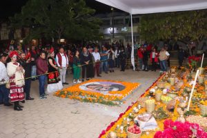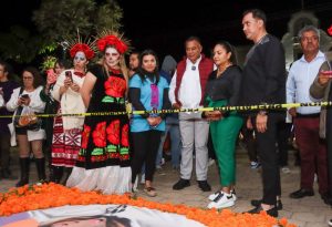 Más adelante, inauguró la Exhibición de Altares en cuya construcción participó entusiasta parte de la población local, la que permanecerá hasta este jueves en el parque central; y la Ruta al Mictlán, en la calle Genaro V. Vásquez.
