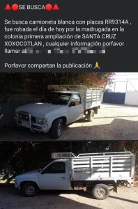 Santa Cruz Xoxocotlán, Oaxaca.- Tras el reporte de que se recibió a través del Centro de Comando y Control (C2}, elementos de la Comisión de Seguridad Pública, Vialidad y Protección Ciudadana de Santa Cruz Xoxocotlán lograron el aseguramiento de un vehículo con reporte de robo.