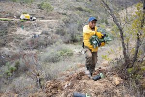 Por ello, este jueves personal de la Coesfo trasladó 10 mil ejemplares, que fueron donados a través de los viveros de Reforesta Oaxaca de esta dependencia, a la municipalidad. También, efectuó la apertura de zanjas-bordo y cepas en la zona destinada a la reforestación, las cuales servirán para la captación e infiltración de agua para garantizar con ello la presencia de humedad y el desarrollo de los árboles.