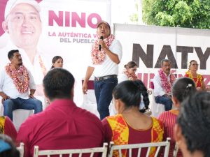 San Juan Guichicovi, Oax, 19 de mayo de 2024.- Nino Morales candidato de MORENA al Senado llamó a votar este próximo 2 de junio, por el camino de la transformación y no permitir que regrese la corrupción y la impunidad.