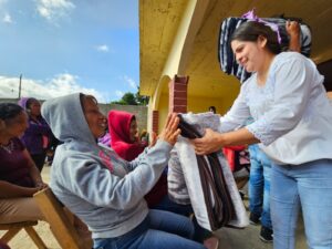 La señora Silvia Santos Pérez, representante de la Fundación Nino, destacó la importancia de apoyar a los grupos vulnerables de las zonas más frías de Oaxaca, para así cuidar de su salud y garantizarles una mejor calidad de vida.