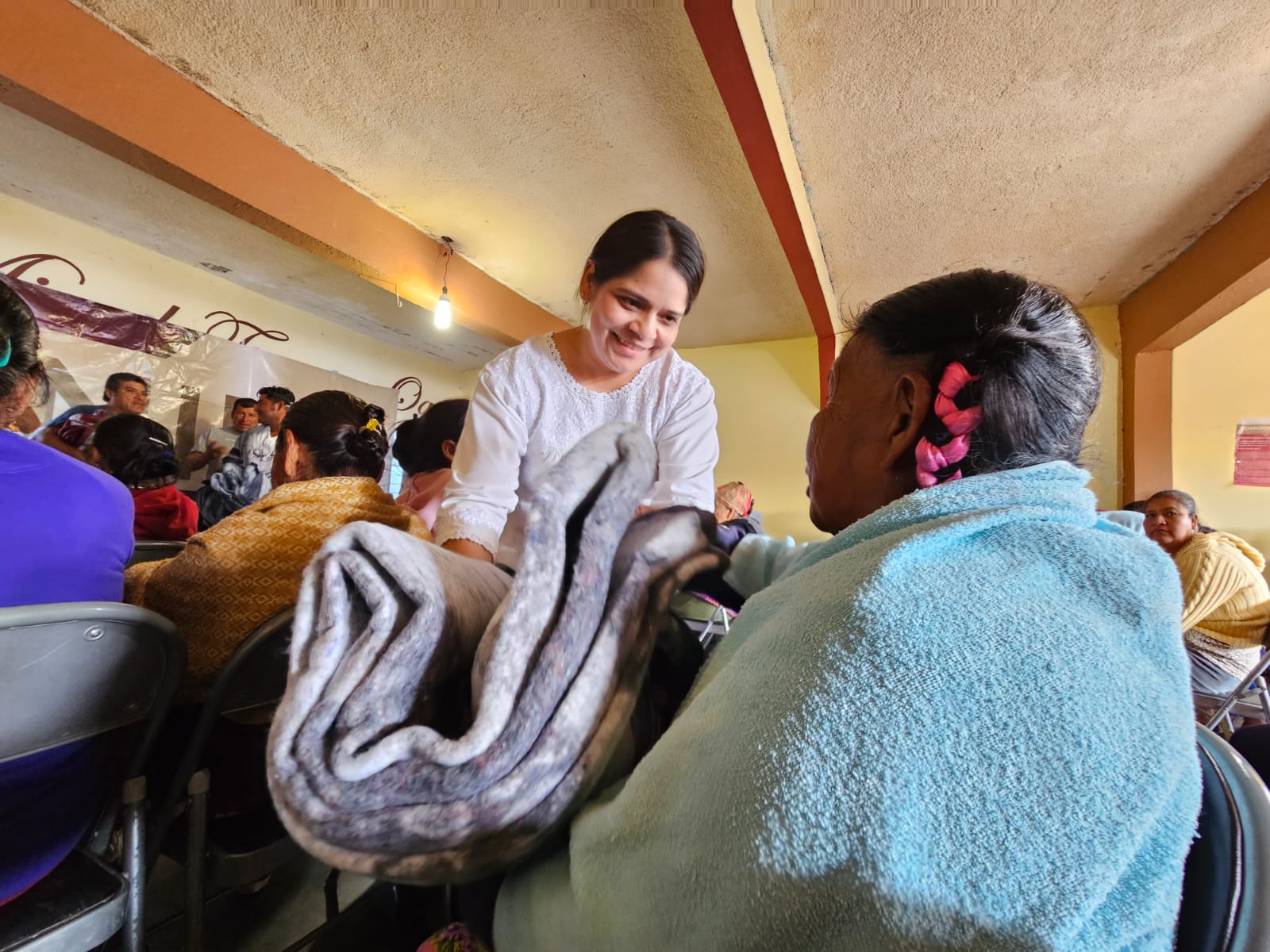 Acompañada de las autoridades municipales y particularmente del pueblo de San Carlos Yautepec y San Miguel Tenango, Silvia Santos hizo entrega de más de mil cobijas para llenar de calidez los hogares de Oaxaca.