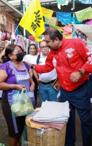 “Aquí lo conocemos de siempre, es un hombre respetable, dedicado a su trabajo y que siempre busca como ayudar a los demás”, expresó un locatario, mientras saludaba al candidato tricolor.