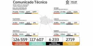 En este sentido dio a conocer que durante el período comprendido del 26 de junio al 02 de julio, la entidad registró un acumulado de 126 mil 559 casos confirmados de COVID-19, de los cuales dos mil 156 se contabilizaron en esta última semana, lo que significa que hubo un incremento del 40.45% en comparación a la semana anterior.